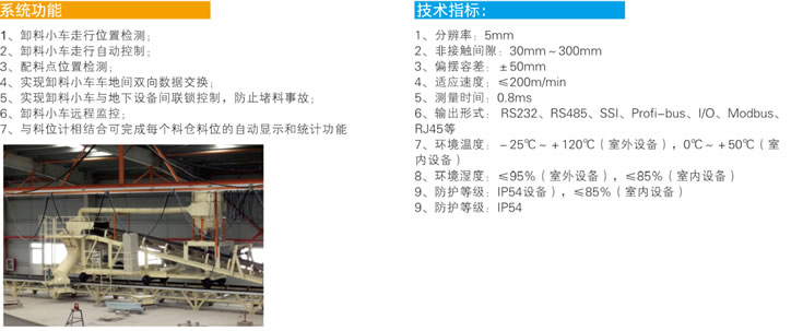 卸料小車自動布料系統(tǒng)主要用于散狀物料處理、礦山系統(tǒng)、堆場系統(tǒng)、礦石處理、裝載系統(tǒng),輸送系統(tǒng)以及港口設備系統(tǒng)中卸料小車精確定位和自動控制,如港口料場堆取料設備定位裝卸和集中監(jiān)控,廠區(qū)料場、燒結(jié)廠、耐火廠卸料小車的精確定位裝卸和集中臨控焦化廠配煤盤、翻車機、葉輪給煤機的定位聯(lián)鎖:其它有軌移動設備的精確定位和集中監(jiān)控。卸料小車可以在輸料系統(tǒng)中將上料皮帶機上的料卸在指定的倉位或料棚里。為達到一臺卸料小車能給不同的料倉或料場卸料,卸料小車能沿著上料皮帶機運行方向進行正反方面的運行。此外,結(jié)合料位計可完成每個料倉料位的自動顯示和統(tǒng)計功能。提高配科效率,節(jié)約成本,提高企業(yè)產(chǎn)值,有效提高競爭力。